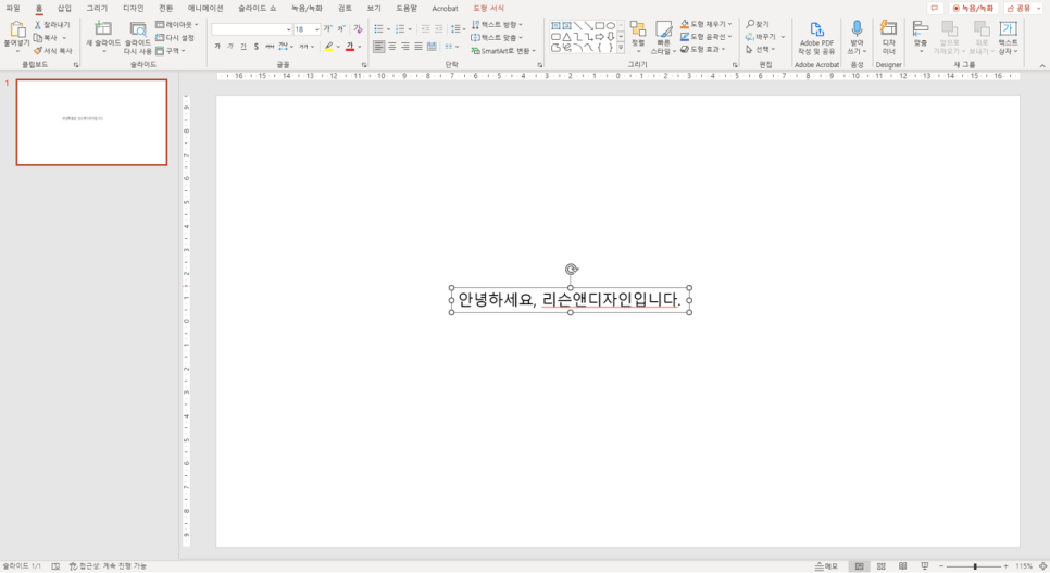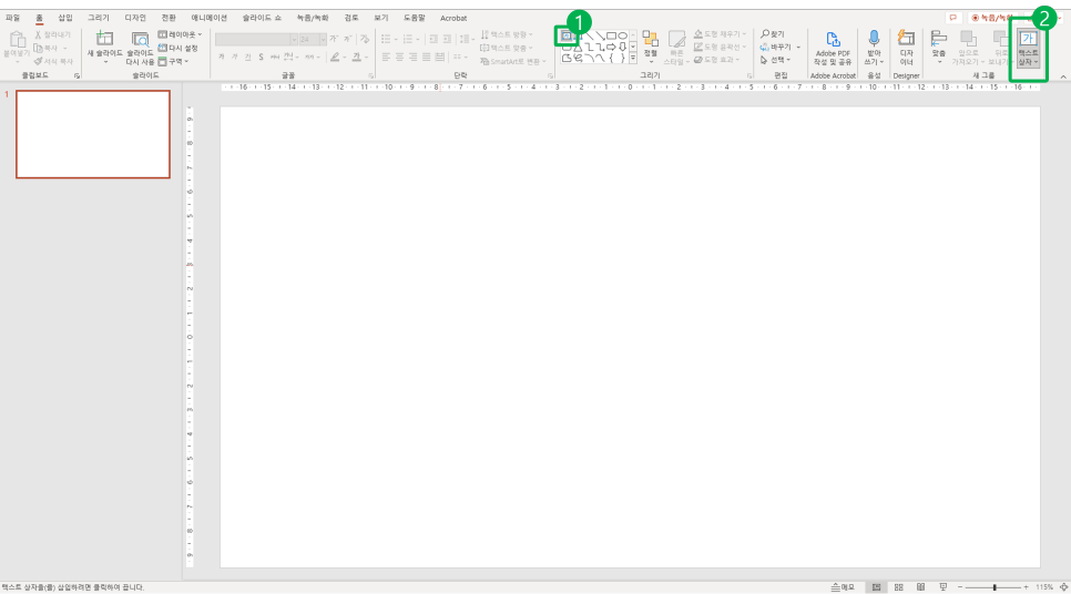 홈 → 텍스트 상자 아이콘 클릭! (1,2번 중 택 1)