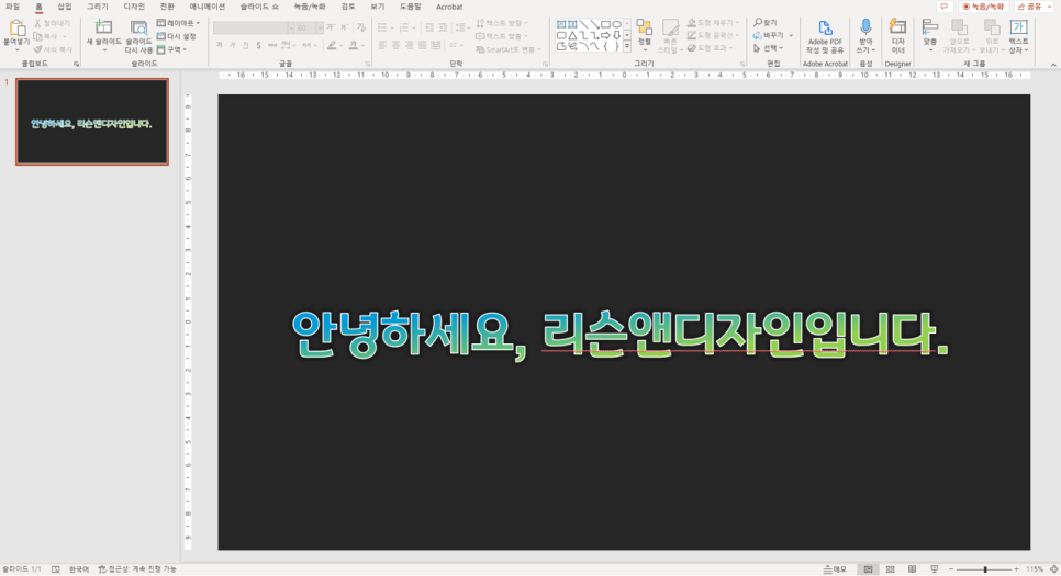 짠~ 배경색을 바꾸고 텍스트 라인을 넣어주니 더 화려한 텍스트가 되었습니다 :)